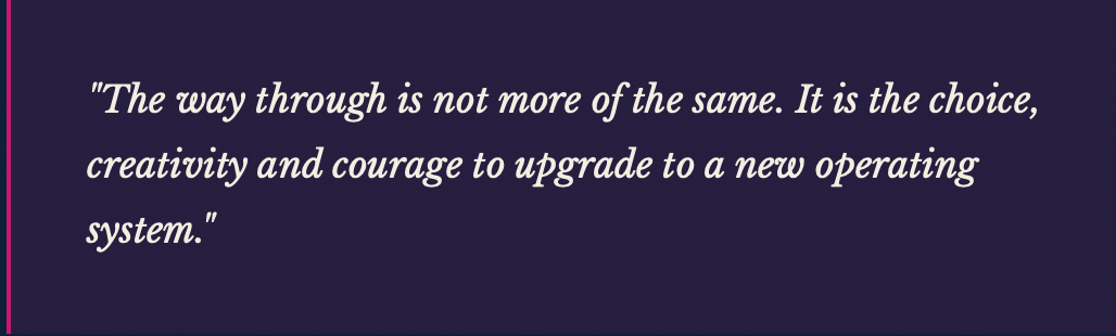 That is because we are trained to be good soldiers of the old status quo - sustaining what exists. And not the brave builders of the new future we actually want to see - personally or collectively.